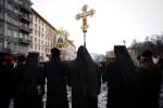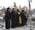 - Ucraina-Kiev: Călugării de la Lavra Pecerska, împreună cu câțiva credincioși stând în frig între forțele de ordine și protestatari